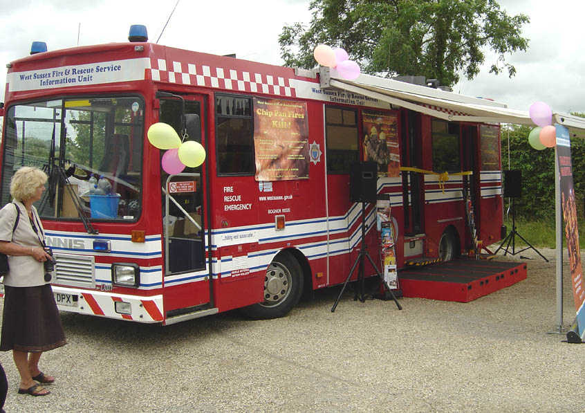 A new mobile Information Unit has been launched by West Sussex Fire and Rescue Service to reinforce its drive to reduce deaths and injuries through education. This drive is aimed particularly at children because statistics show them to be particularly vulnerable to fire deaths and injuries three children have died in fires in West Sussex in the last 12 months. The Information Unit was a former Incident Command Unit that was used as a control point at major incidents. It was converted by Bognor Regis firefighters and staff at the Service's workshops at Tangmere. It contains the reconstruction of a fire in a child's bedroom and an interactive area with computers, including the innovative STAYWISE website. Trevor Pilcher , Director of Community Protection, West Sussex Fire and Rescue Service, said: "Children will be shown the bedroom fire scene and discuss the dangers with firefighters and community fire safety officers through questions and answers and role-play. "The interactive computer software is a really great way to get through to children and help with their learning. "The Unit will be touring schools, fetes, open days and other events to promote fire safety and any other safety issues that are part of the Service's wider role in the community. "It will also be used as a mobile post-incident information centre to discuss issues with communities following serious incidents." The Unit was formally launched at Boxgrove Church of England School near Chichester, on Friday, July 1 by County Councillor Clem Stevens , Deputy County Council Cabinet Member for Public Protection. He said: "The Unit will be a vital communication link between the Fire and Rescue Service and the wider community. "Some people are reluctant to approach the emergency services. If they won't come to us we will go to them, giving advice on what we can do to make them safer. "It will enable fire safety experts from our Fire and Rescue Service to reach distant and rural communities that were traditionally hard to reach." Lionel Barnard , County Council Cabinet Member for Public Protection, said: "Going out into the community and actively promoting fire safety is now a key priority for the Fire and Rescue Service. "This eye-catching, state-of-the-art Unit with its range of hi tech facilities, plus attention-grabbing displays will play a key role as our firefighters strive to meet their overall aim to make West Sussex a safer place to live and work in. "It will, I am sure, be a popular attraction as it tours our county, giving out valuable information to all ages." The eye-catching vehicle is also available to hire, complete with a crew of two, and can be adapted to help launch specific localised campaigns. Its other features include: